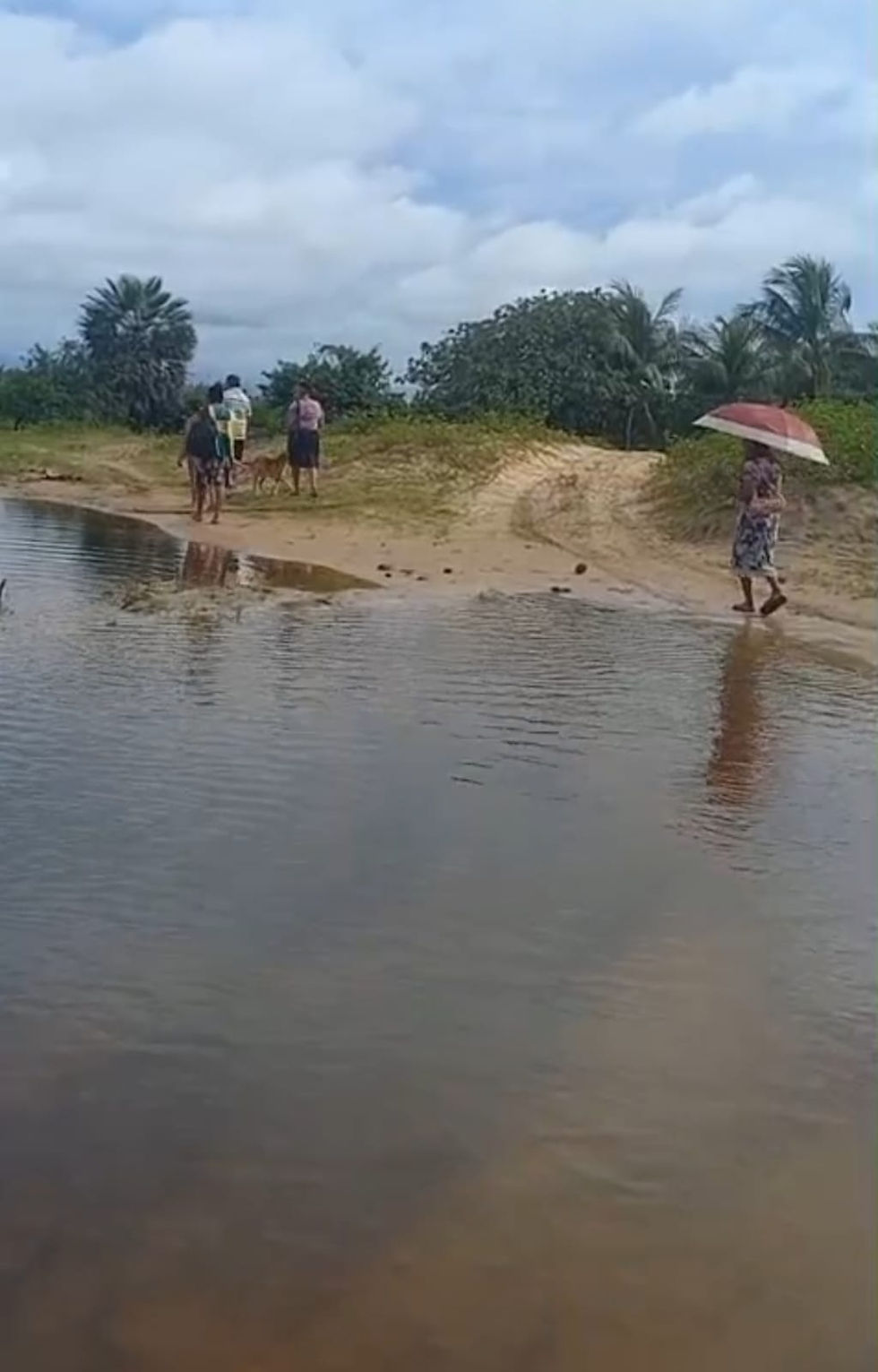 As imagens, gravadas em frente à Associação Comunitária dos Moradores de Ponta de Terra (ACOMPT), mostram o momento em que homens e mulheres se arriscam em águas profundas. Em alguns trechos, o nível da inundação chega à cintura, tornando impossível a passagem de motos, carros ou até mesmo o transporte escolar.